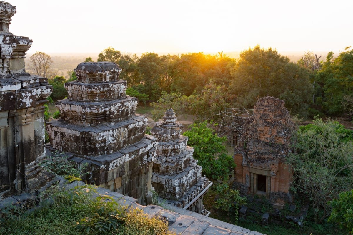 Au nord-ouest du Cambodge, cachés entre une jungle luxuriante et les vestiges silencieux d’une civilisation disparue, s’étend le mystérieux site des Temples d’Angkor. Inscrits au Patrimoine mondial de l’UNESCO, ces chefs-d’œuvre invitent à explorer une mosaïque de prouesses architecturales et de récits anciens. Si beaucoup associent le nom Angkor Wat à tout le site, il ne s’agit pourtant que de la porte d’entrée d’un espace monumental qui fut le centre névralgique de l’Empire khmer, l’un des plus puissants royaumes asiatiques.